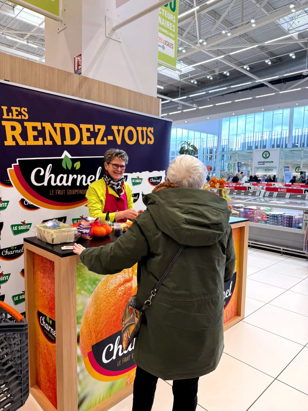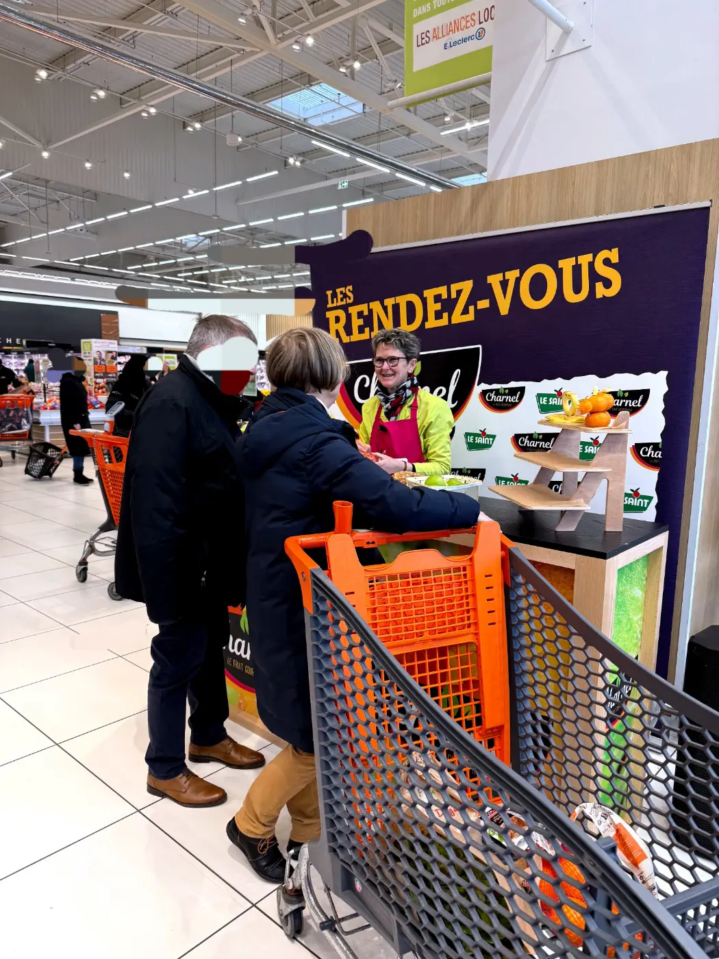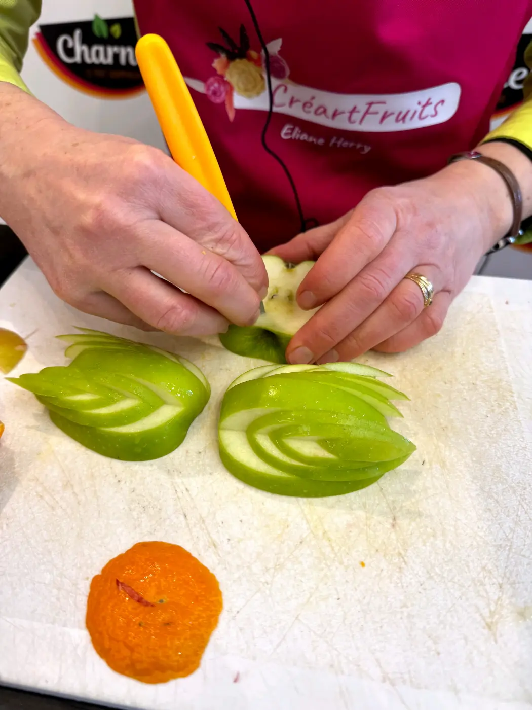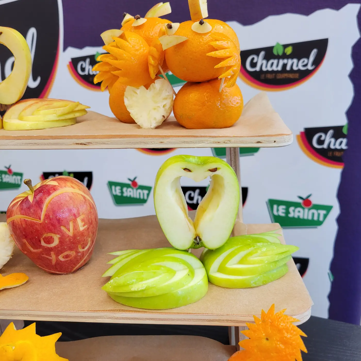 Démonstrations de sculptures sur fruits le week-end dernier au Centre E.Leclerc de Gouesnou sur le Stand Charnel du réseau Le Saint.