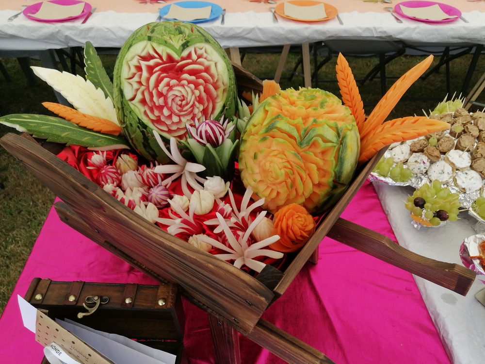 Pour vos évènements (anniversaires, baptêmes, mariages ou soirées d’été), je transforme les melons et pastèques en de véritables pièces maîtresses comestibles.