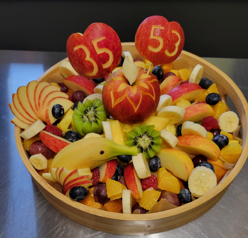 Les fruits sont lavés et découpés le jour même de la prestation, et je vous conseille de les consommer dans les 24h pour une fraîcheur optimale !