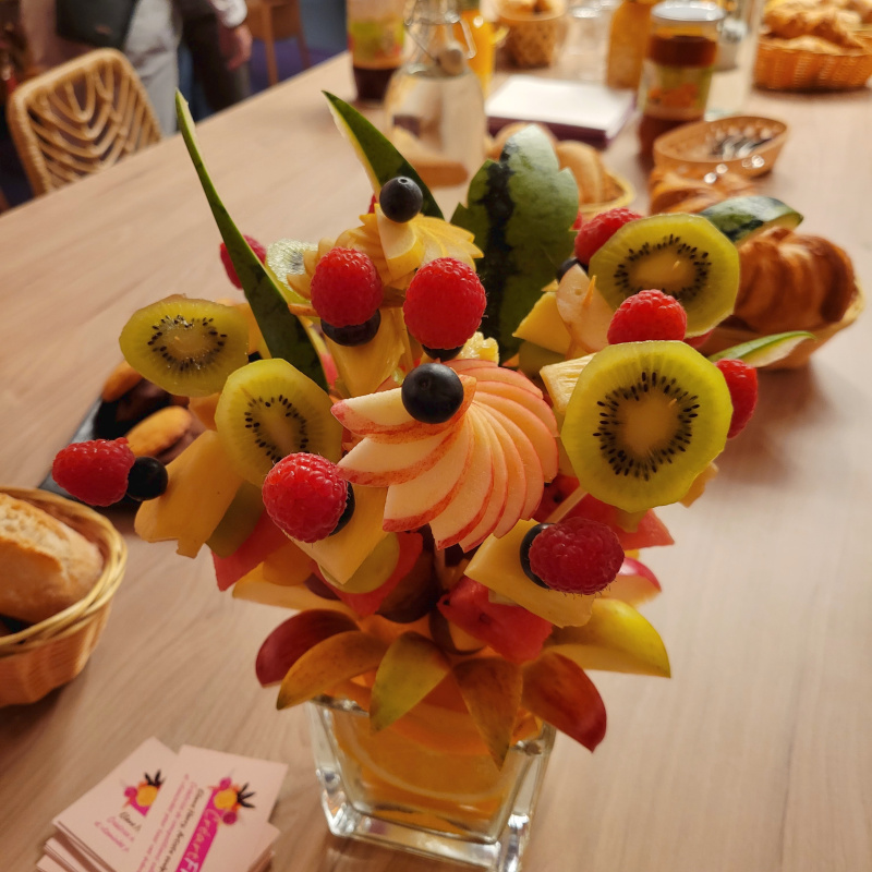 Que ce soit pour fêter un anniversaire, une signature de contrat, un nouveau produit, ou encore un départ en retraite ou un pot d’entreprise, je peux vous proposer une démonstration sur fruits et légumes qui émerveillera vos clients ou invités.